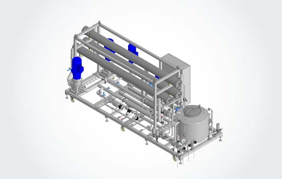 MEGA electrodialysis units can process natural whey or whey concentrated up to 22% TS - 18 - 22% TS by evaporation (EV) or pressure membrane processes as reverse osmosis (RO) or nanofiltration (NF). This is preferred due to the higher conductivity of the feed after the concentration and the optimal efficiency of MEGA ED units. Thanks to the concentration and higher conductivity of the feed MEGA electrodialysis units can achieve high demineralization rates like D90 (1% Ash ODB) without using ion exchange.